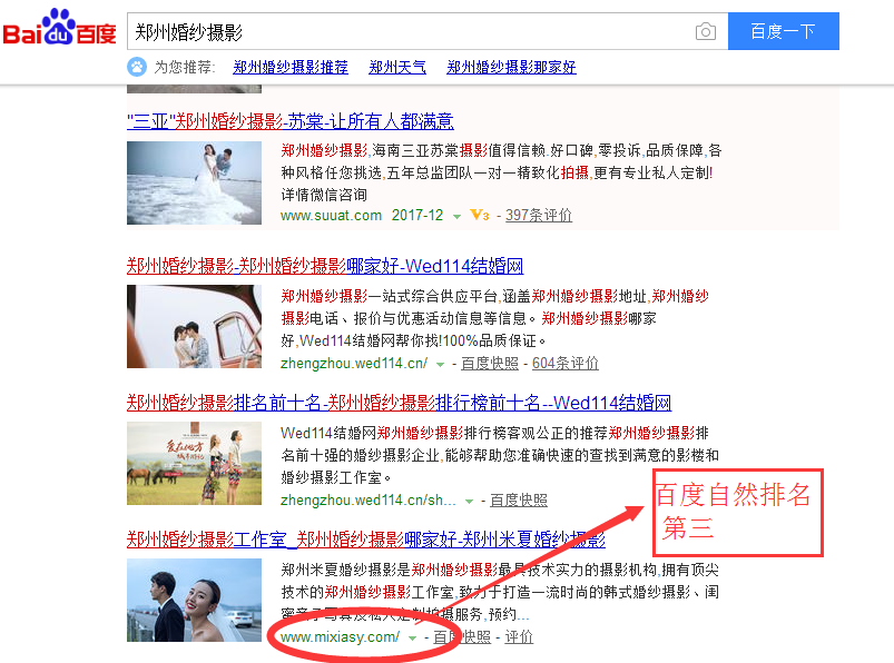 郑州百度优化案例_郑州婚纱摄影 日期:2017-12-01  作者:千搜网络  点击:6697  点赞: